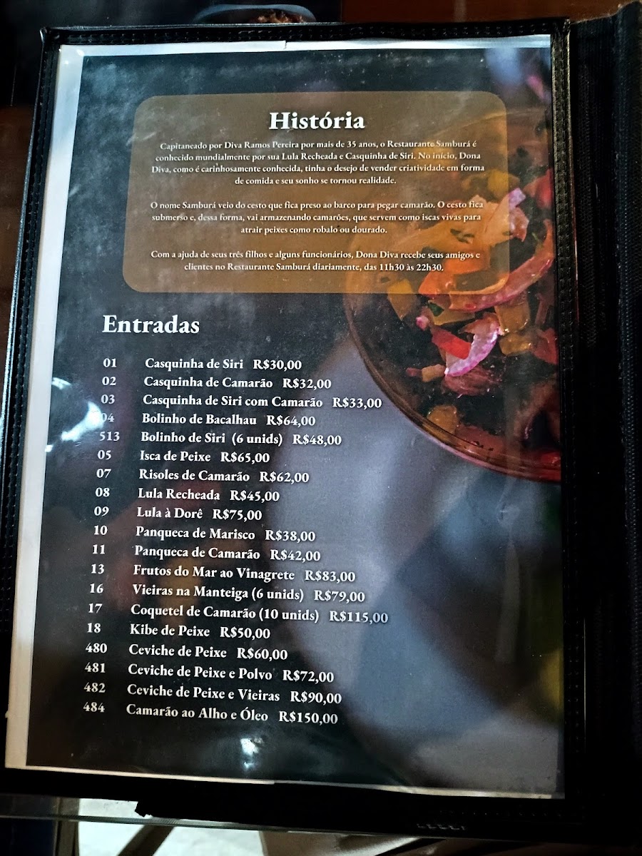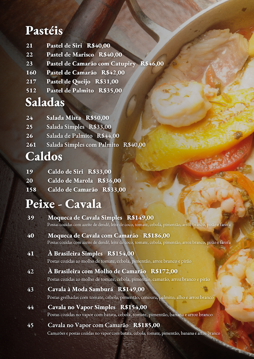 The menu at Restaurante Samburá offers a warm and approachable selection centered on fresh, local seafood. Its dishes blend traditional Brazilian flavors with coastal influences, presenting comforting meals that suit both leisurely lunches and relaxed dinners. Whether you’re sharing a hearty moqueca or enjoying lighter bites like the pastel de camarão com catupiry, the menu invites a casual, satisfying experience.